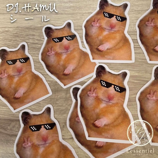 【 DJ ハムスター ステッカー 】4枚入 シール サングラス ピース キンクマ ゴールデン ペット 平成 レトロ 風 スマホ ノート 学校 癒し かわいい ストレス 解消 デコ
