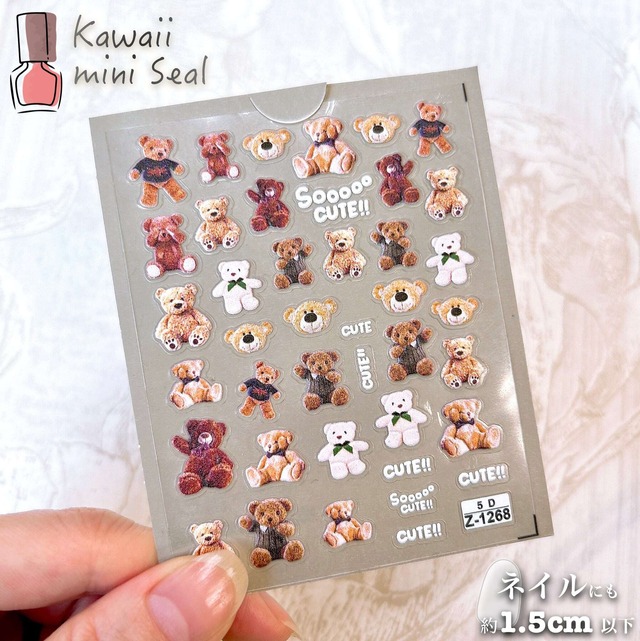 【 可愛さ満点テディベアネイルシール 】 手元を可愛く彩る、特別なネイルアートが楽しめる3Dプクプクネイルシールです。 クマちゃんたちがあしらわれたこのシールは、シンプルなネイルにアクセントを加えたり、 特別な日のネイルアートにもぴったりです! ラッピングやシール帳のデコレーションとしても大活躍。 簡単に貼ることができるため、ジェルネイル初心者でもお手軽にお使いいただけます。 お友達や大切な方へのプレゼントにもおすすめです。 指先から自然の可愛らしさを楽しんでください。 ■内容:テディベア ネイルシール × 1シート ■サイズ(約):1枚 1.5cm以下 このネイルシールを使って、毎日のネイルケアに可愛さとおしゃれをプラスしてみませんか? ぷくぷくとした立体的なテディベアが、あなたの手元を特別なものにしてくれるアイテムです。