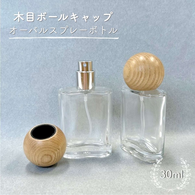 【 木目 ボールキャップ オーバル スプレー ボトル 】 1本 30ml クリア ガラス シルバー ノズル 詰替 ナチュラル オーク 容器 ミスト 化粧水 アロマ 美容 香水 高級感 瓶 手作り ハンドメイド おしゃれ かわいい