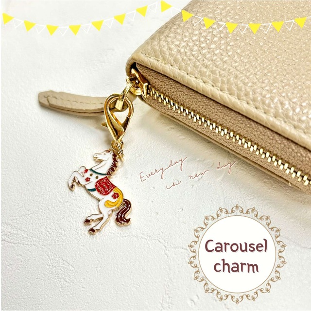 【 回転 木馬 チャーム 】 メリーゴーラウンド カルーセル ゴールド 馬 午年 乗馬 馬主 競馬 ウマ うま 可愛い マルチ ホルダー 鍵 ポーチ バッグ 固定 学校 目印 プレゼント ワンポイント おしゃれ 小物 雑貨 アクセサリー