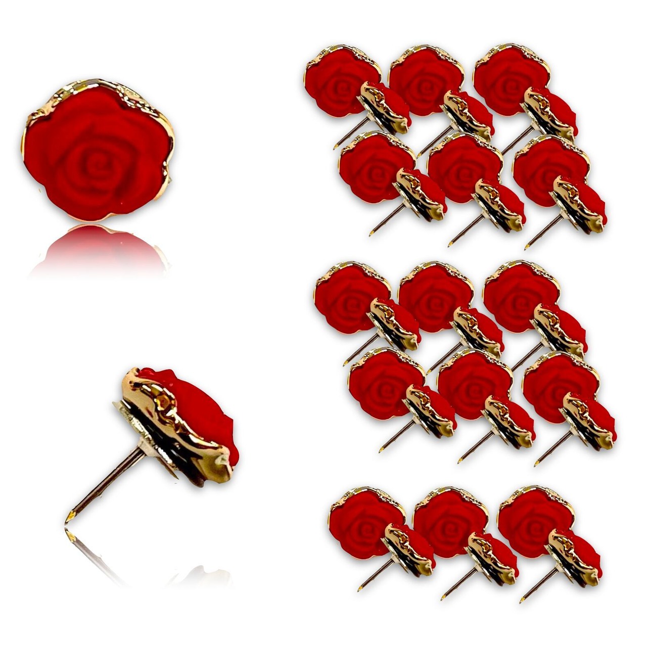 鮮やかな赤のバラがデザインされた画鋲は、壁やオフィスを華やかに彩ります。