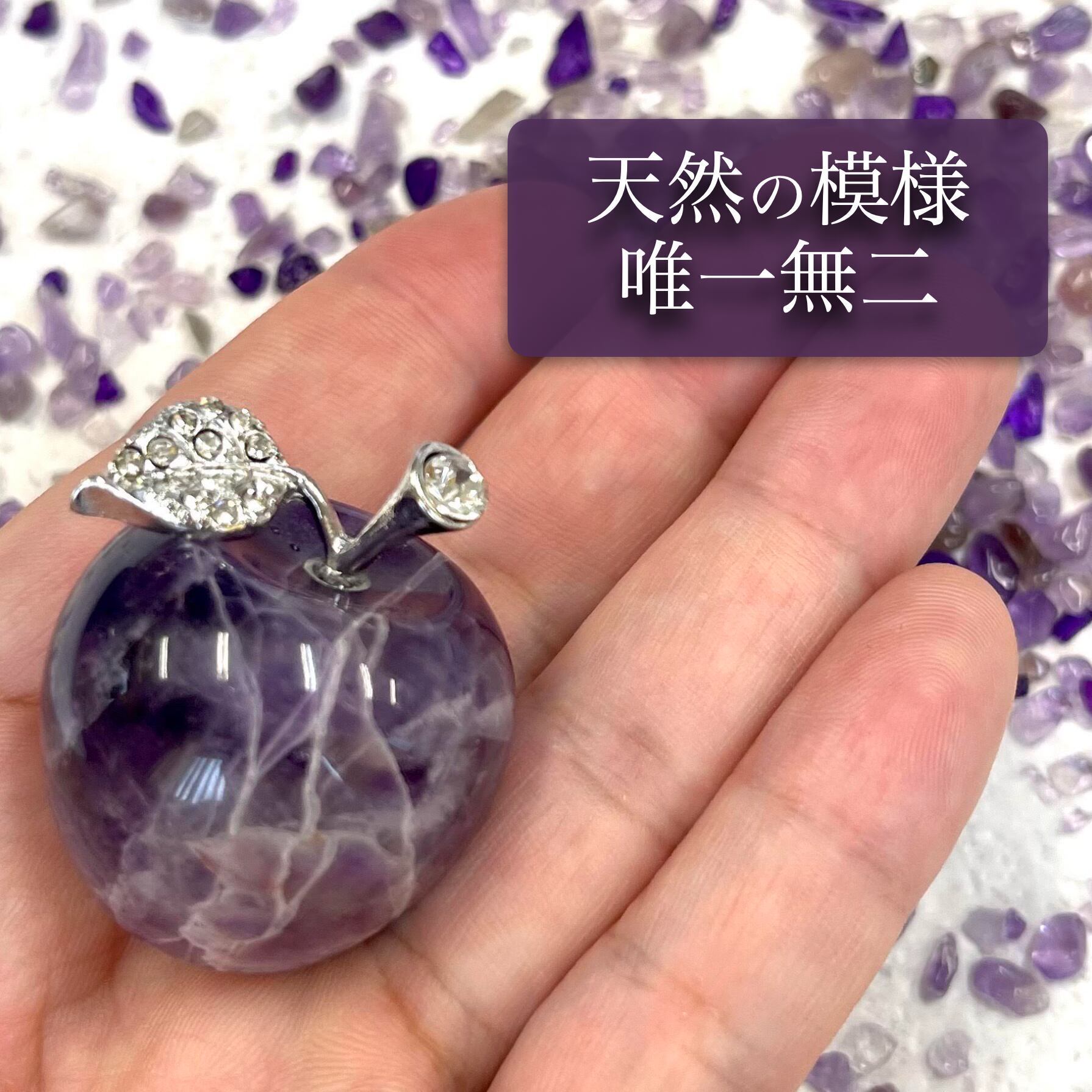美しいアメジストのパワーストーンがリンゴの形になりました。