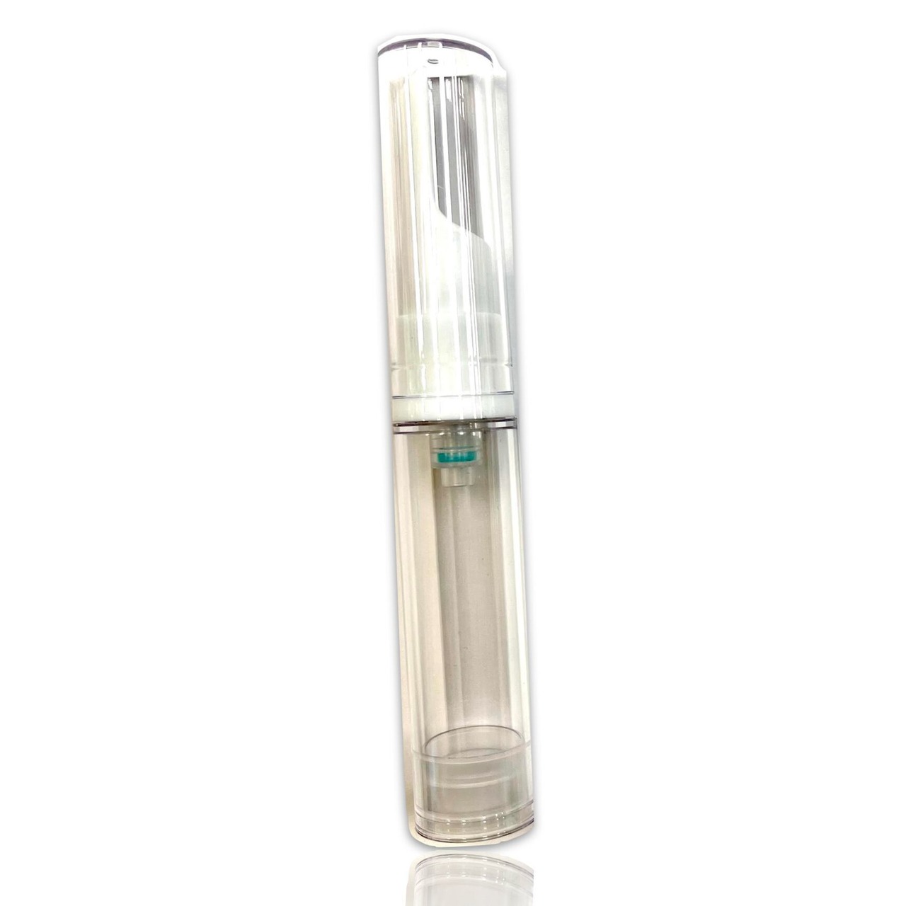 特殊なエアレス構造を採用した、10mlのクリアプラスチック製ポンプボトルです。