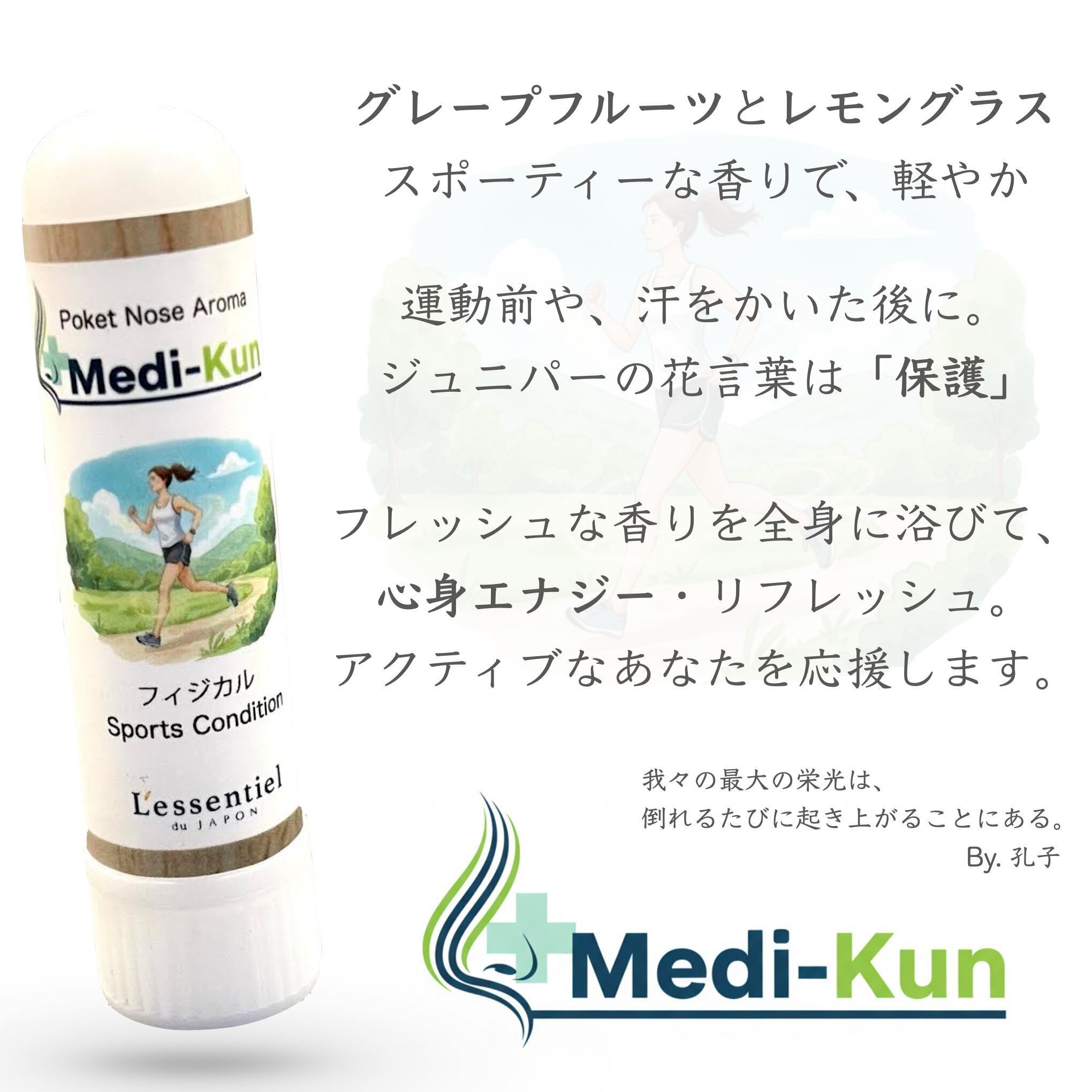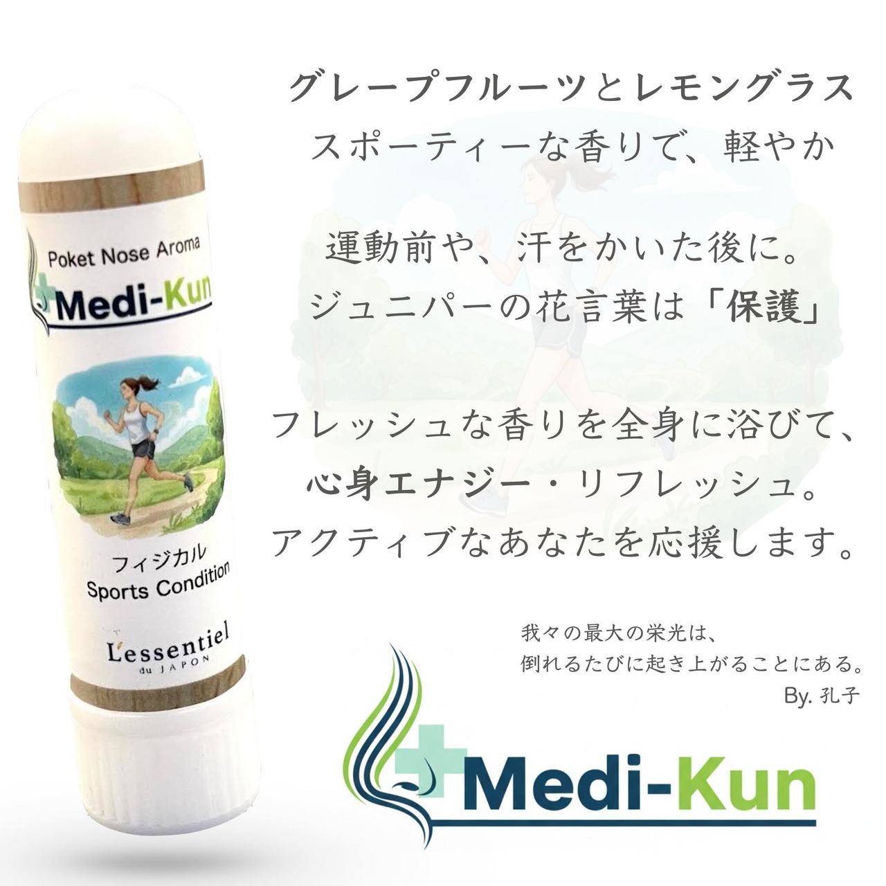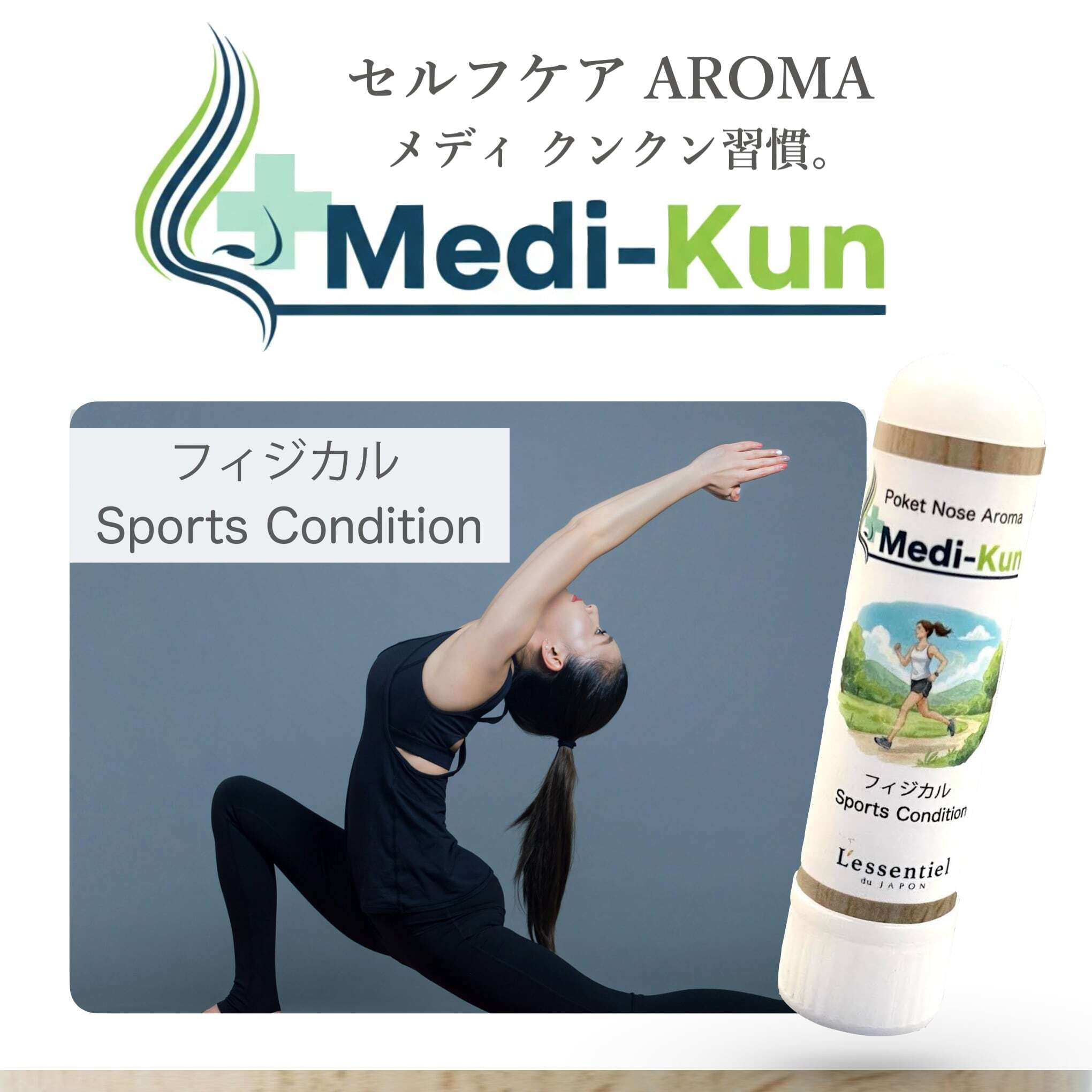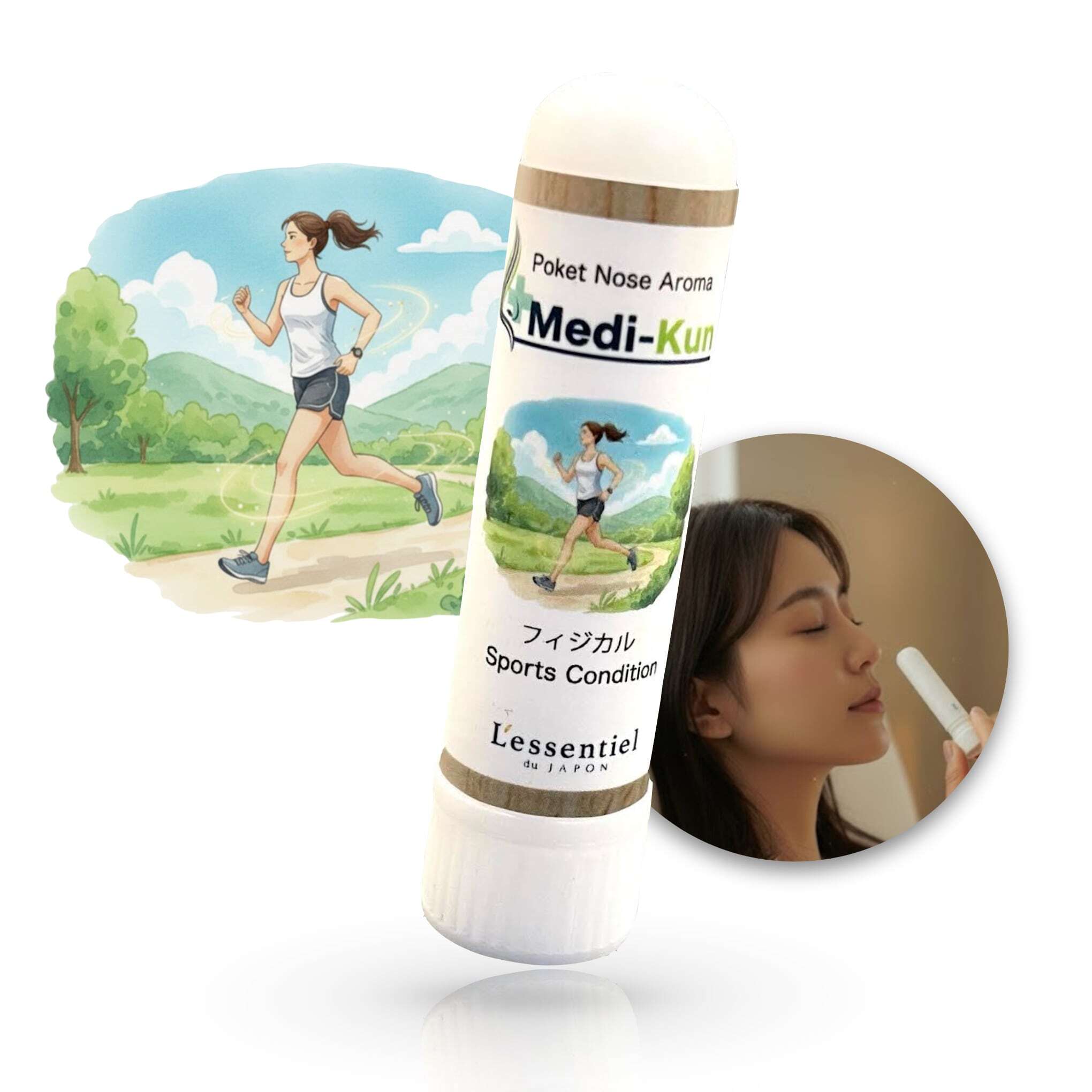 「Medi-Kun フィジカル」は、ヨガ・ティラピス・ランニング・筋トレ等の運動時に、リフレッシュする最適なアロマアイテムです。