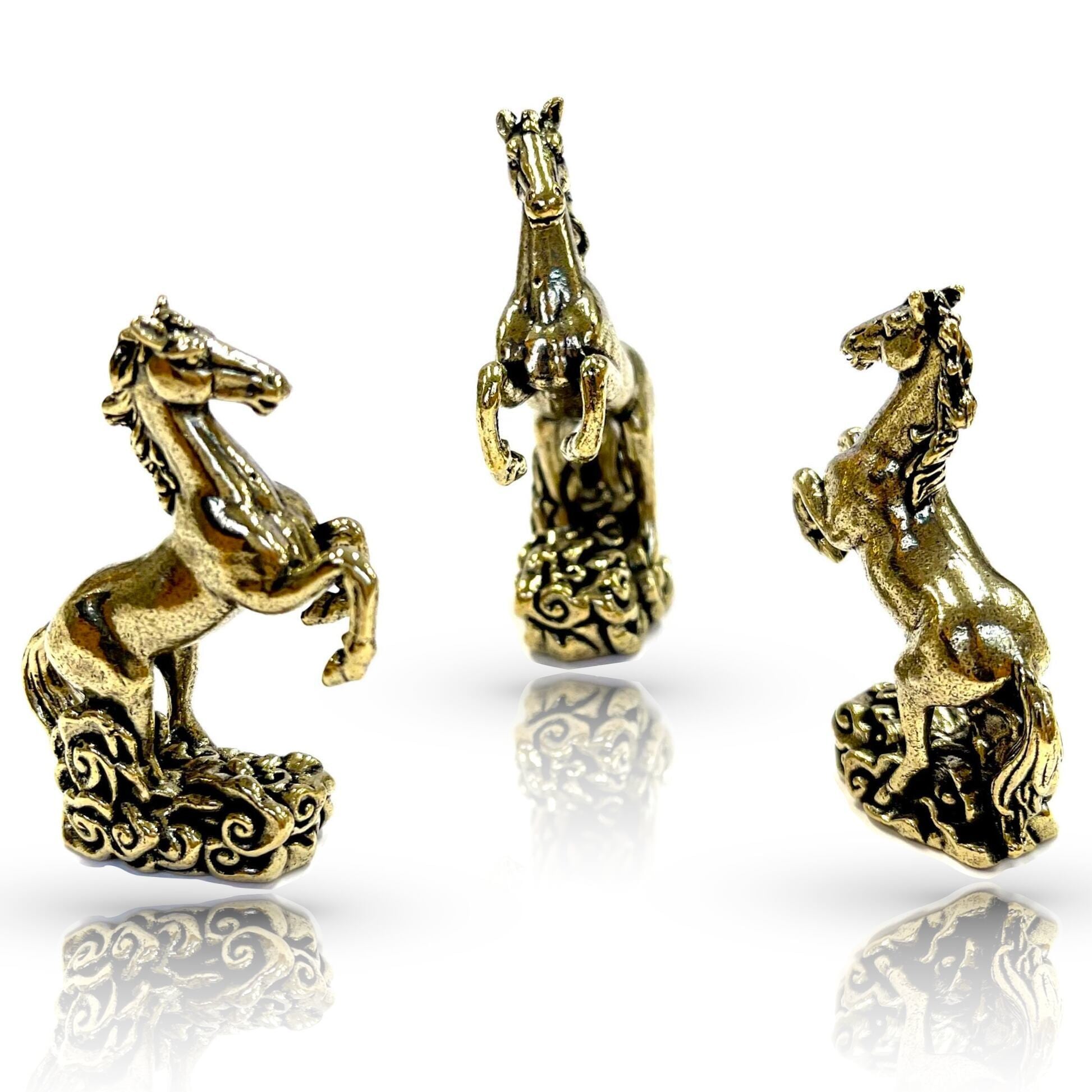 「開運 お守り」は、黄金の勝利馬をモチーフにした魅力的な置物です。