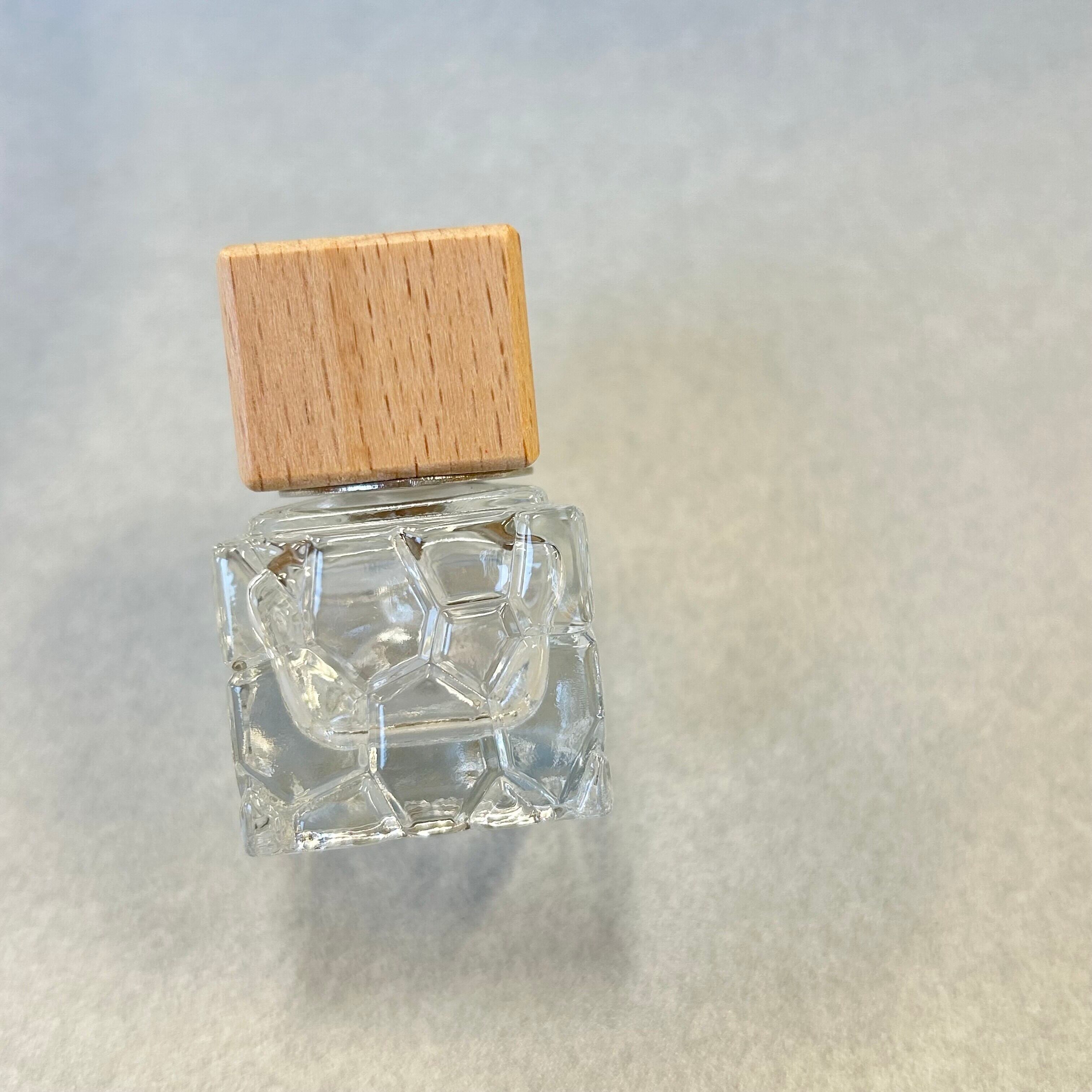 輝きが美しい氷のようなガラス容器とナチュラルな木製キャップが可愛い