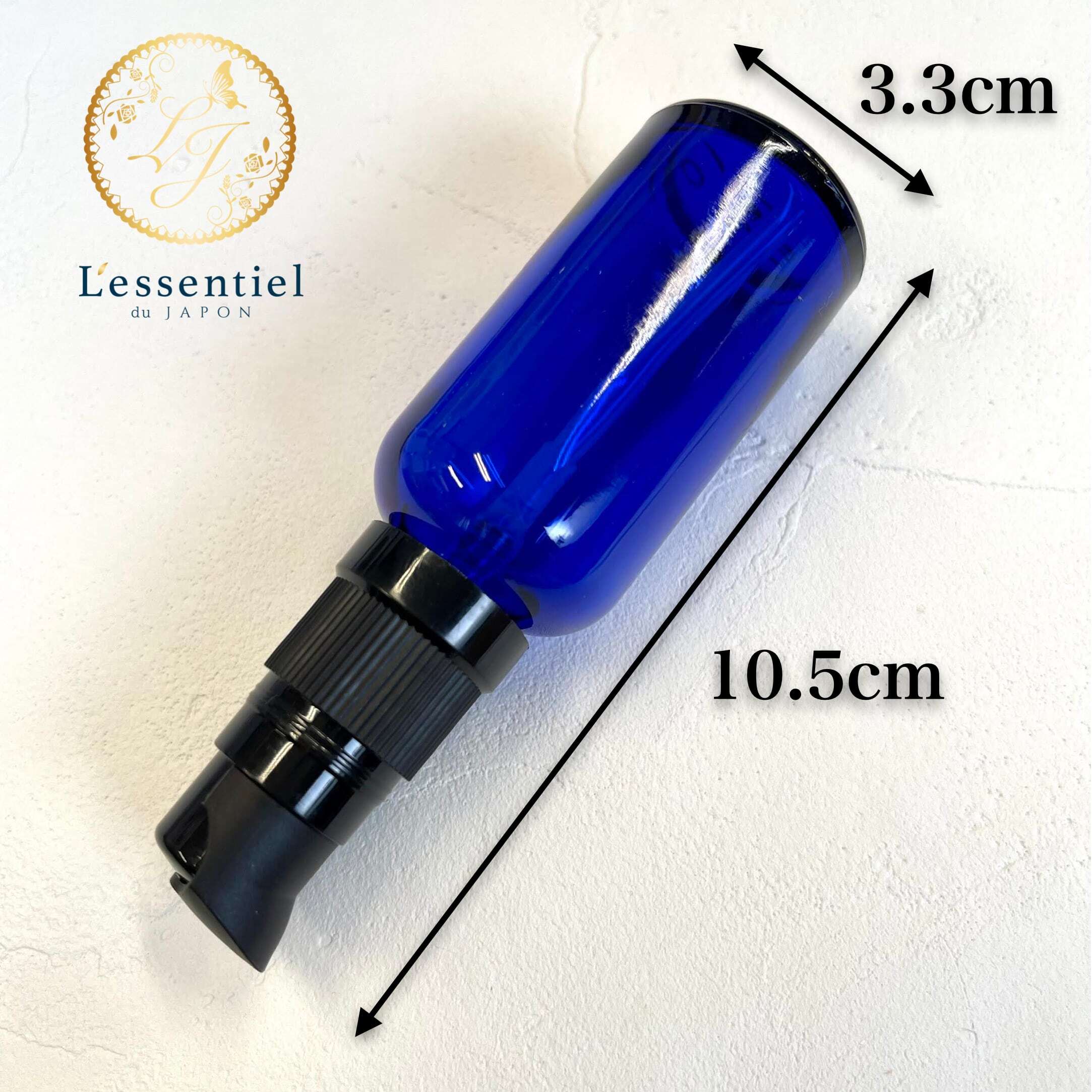 シックなブルーカラーとモダンなデザインが魅力的な遮光瓶は、美容液や化粧水など、多彩な使い方に対応しています。