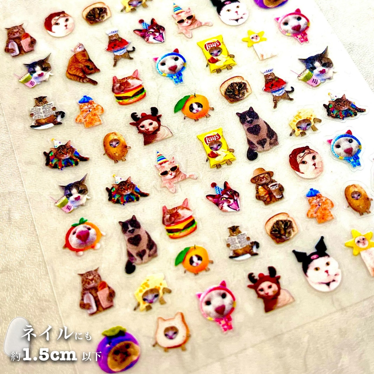 【 可愛らしい猫ミーム風のネイルシール 】