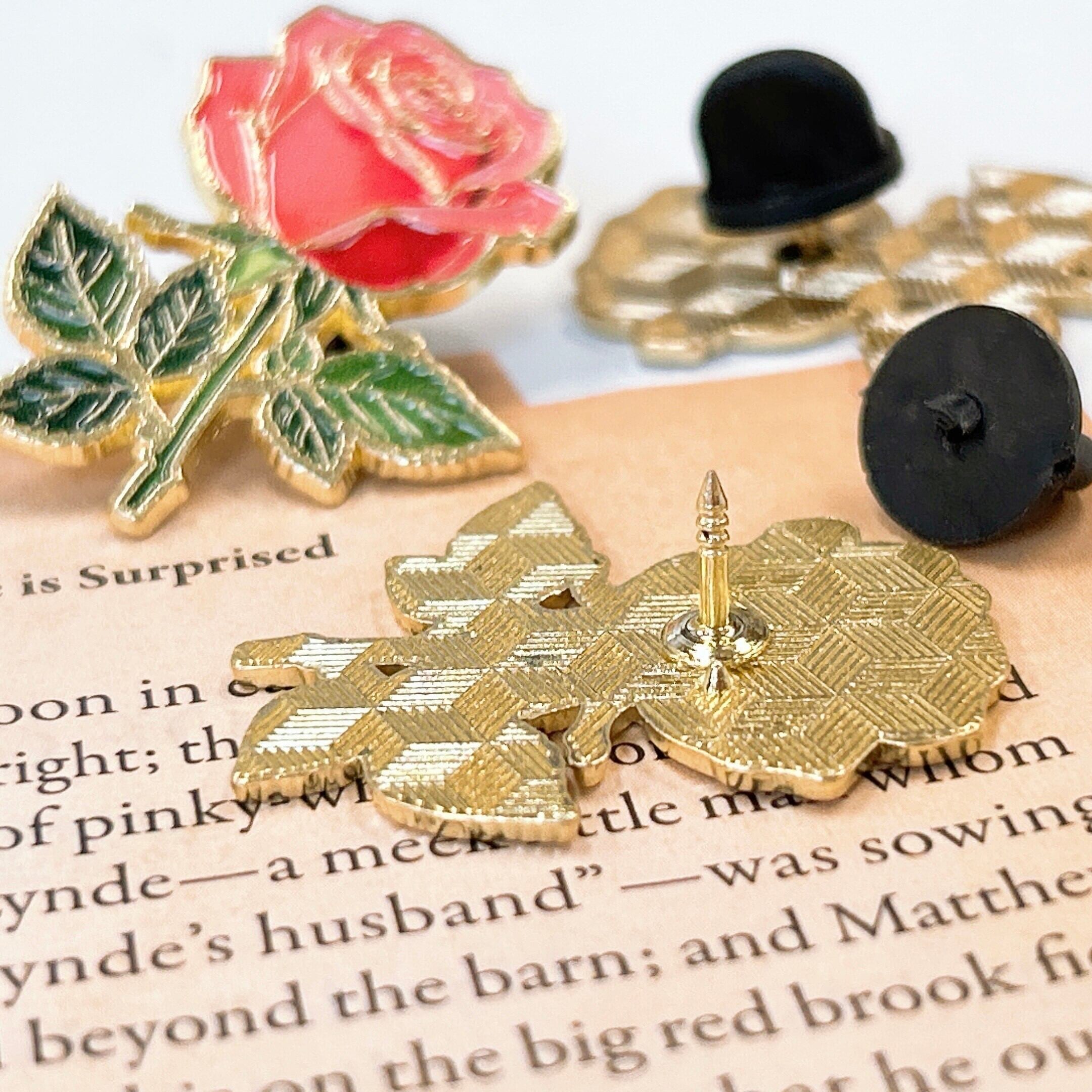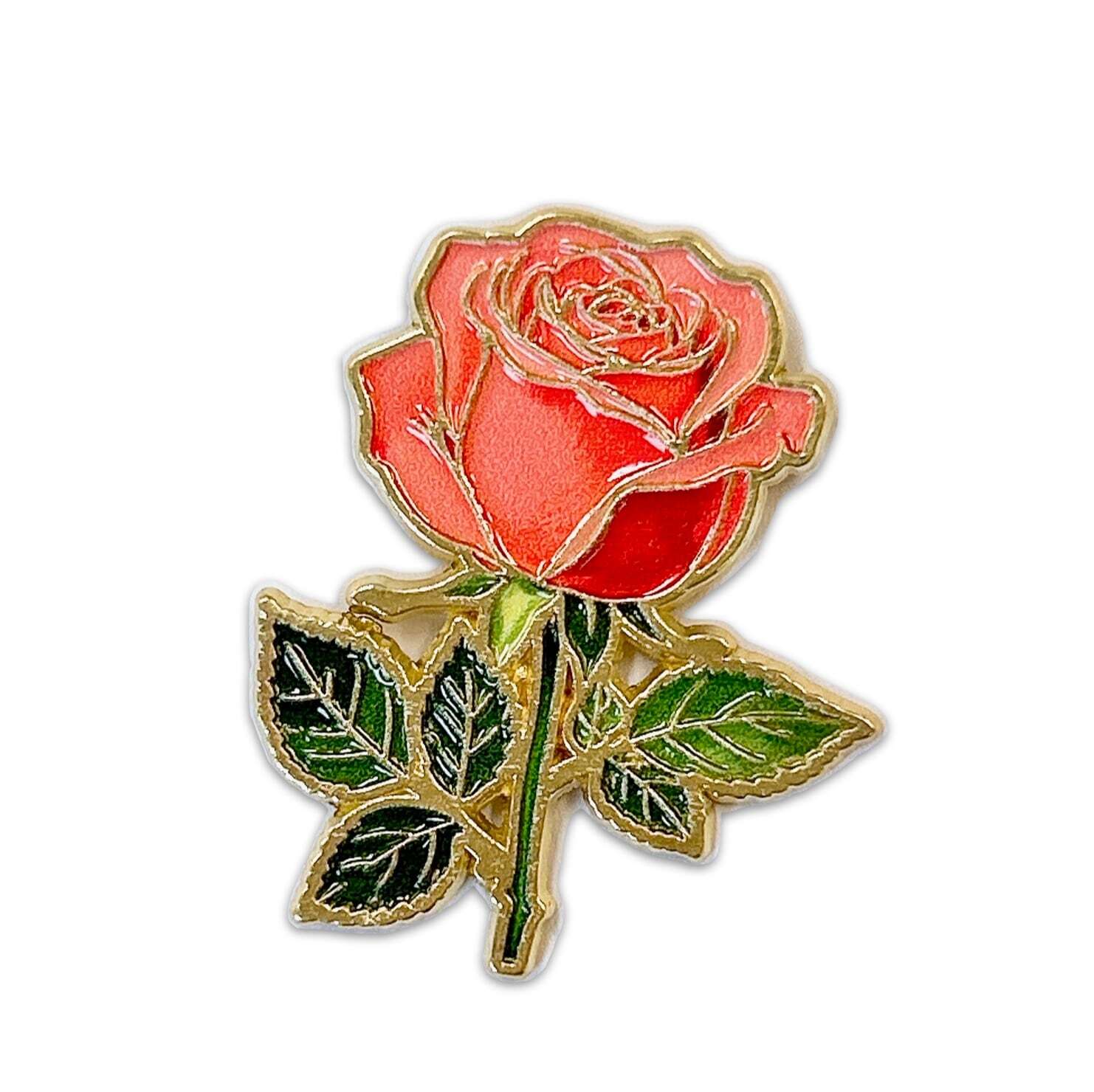 華麗なダマスクローズをモチーフにしたこのピンバッジは、ピンクとゴールドの組み合わせが洗練された印象を与え、どんなスタイルにも華やかさを添えます。