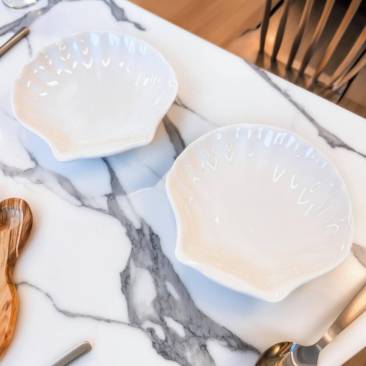 ホワイトの貝殻デザインが、インテリアやキッチンをスタイリッシュに演出します。