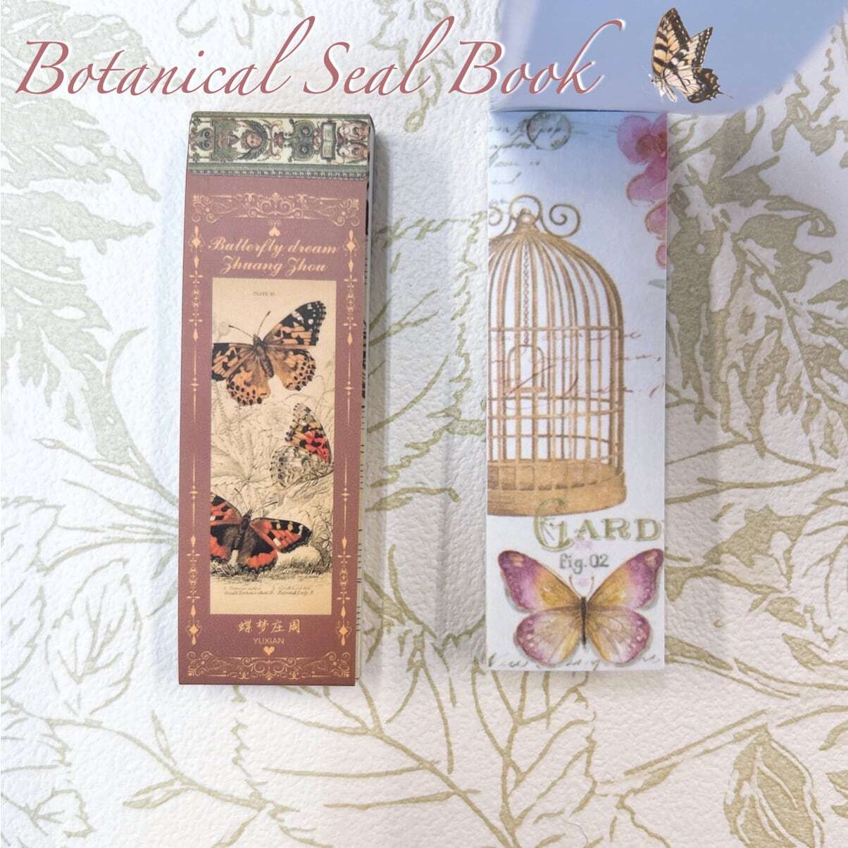【 色とりどりの蝶々や植物が描かれたマスキングシールブック 】