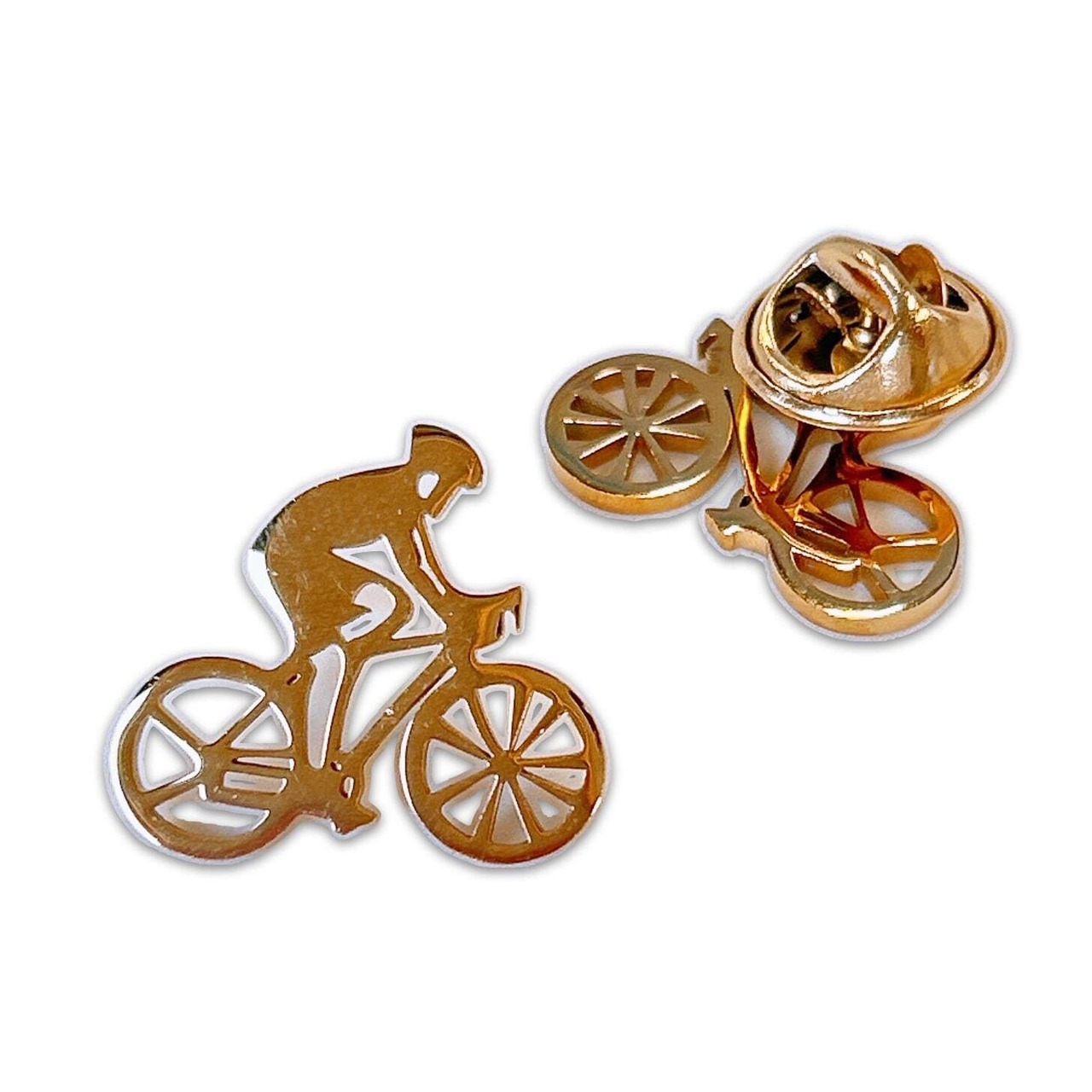 このゴールド サイクリング ピンバッジで、おしゃれなアクセントとして