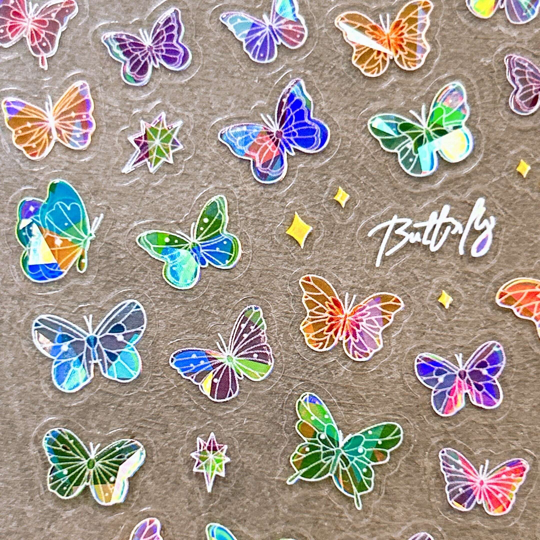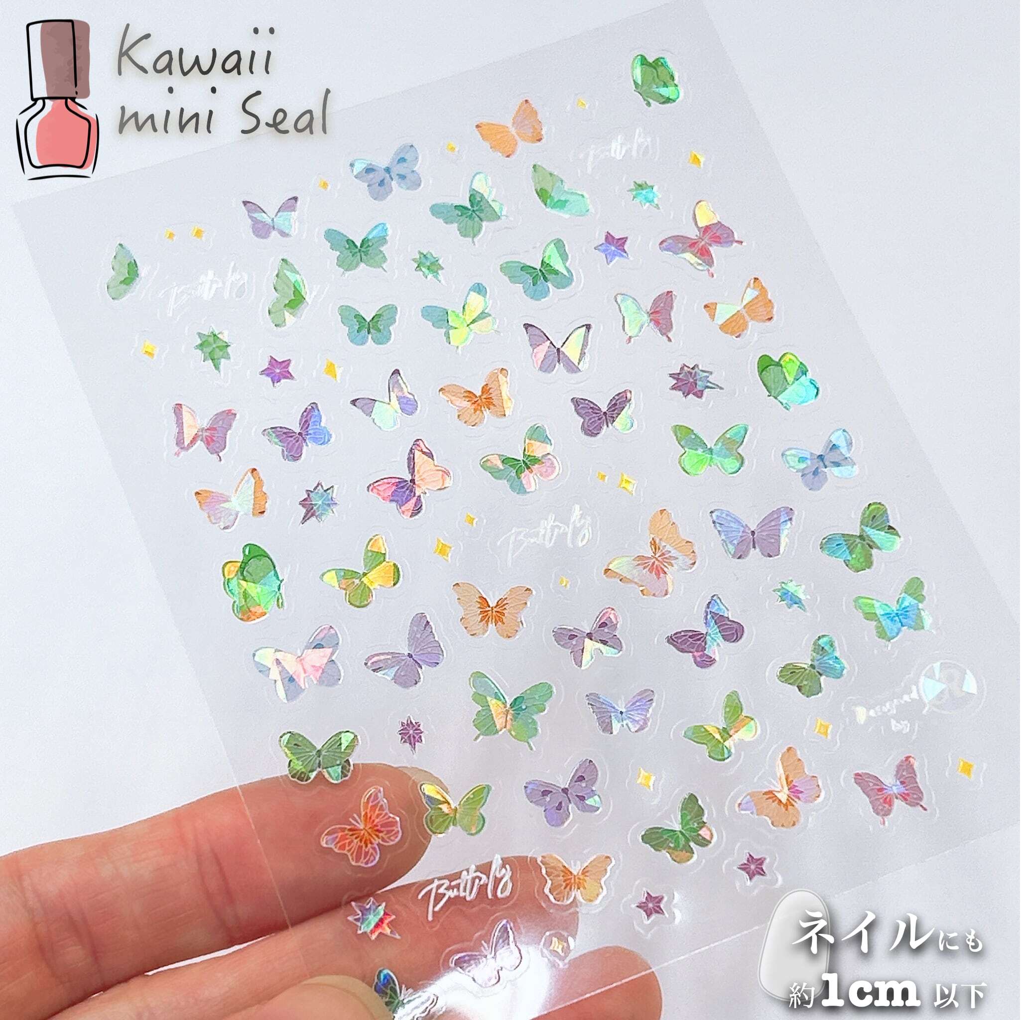 ■内容:キラキラホログラムクリアバタフライ ネイルシール × 1シート