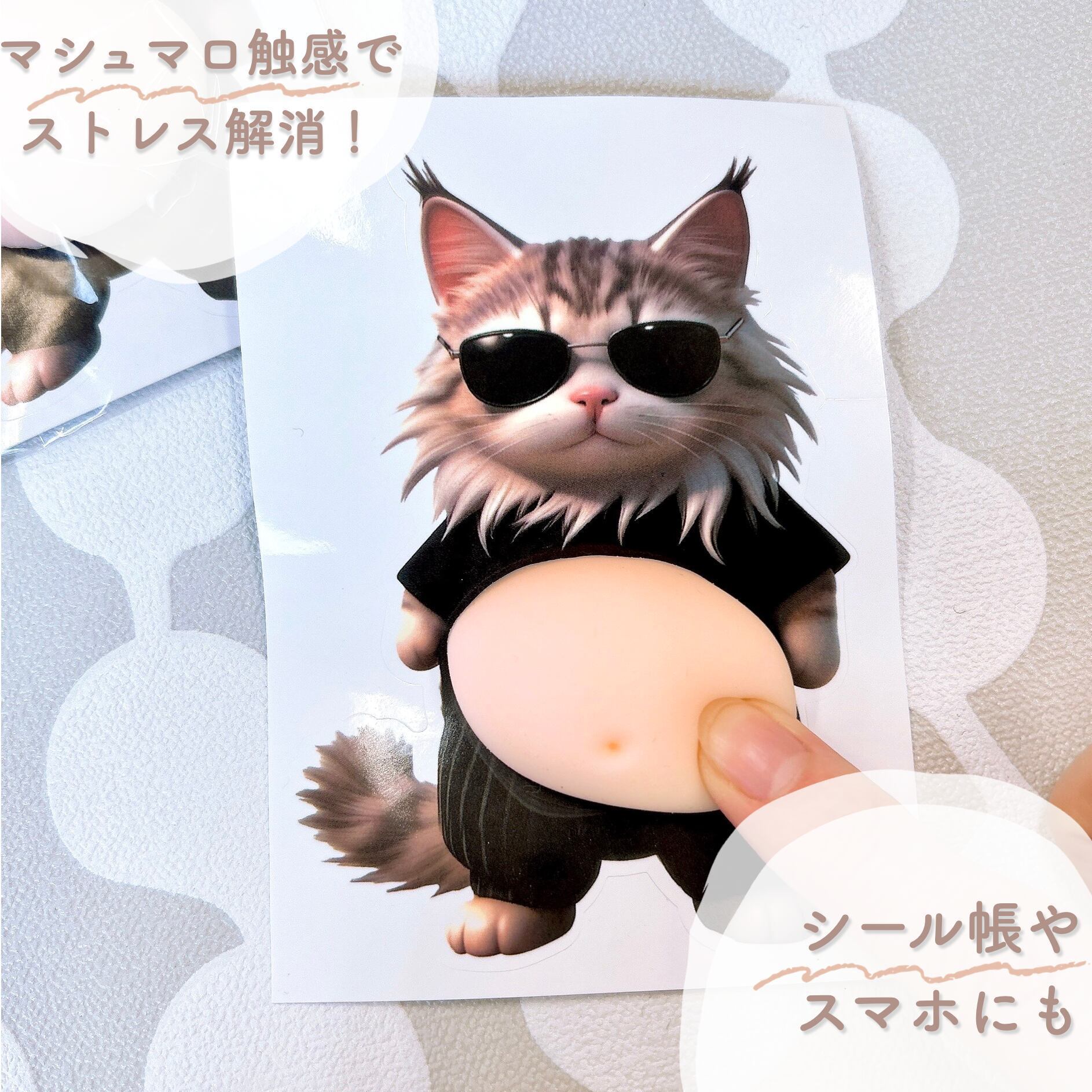 ■内容:ちょい悪サングラス 猫 おなかぷにぷにステッカー × 1枚