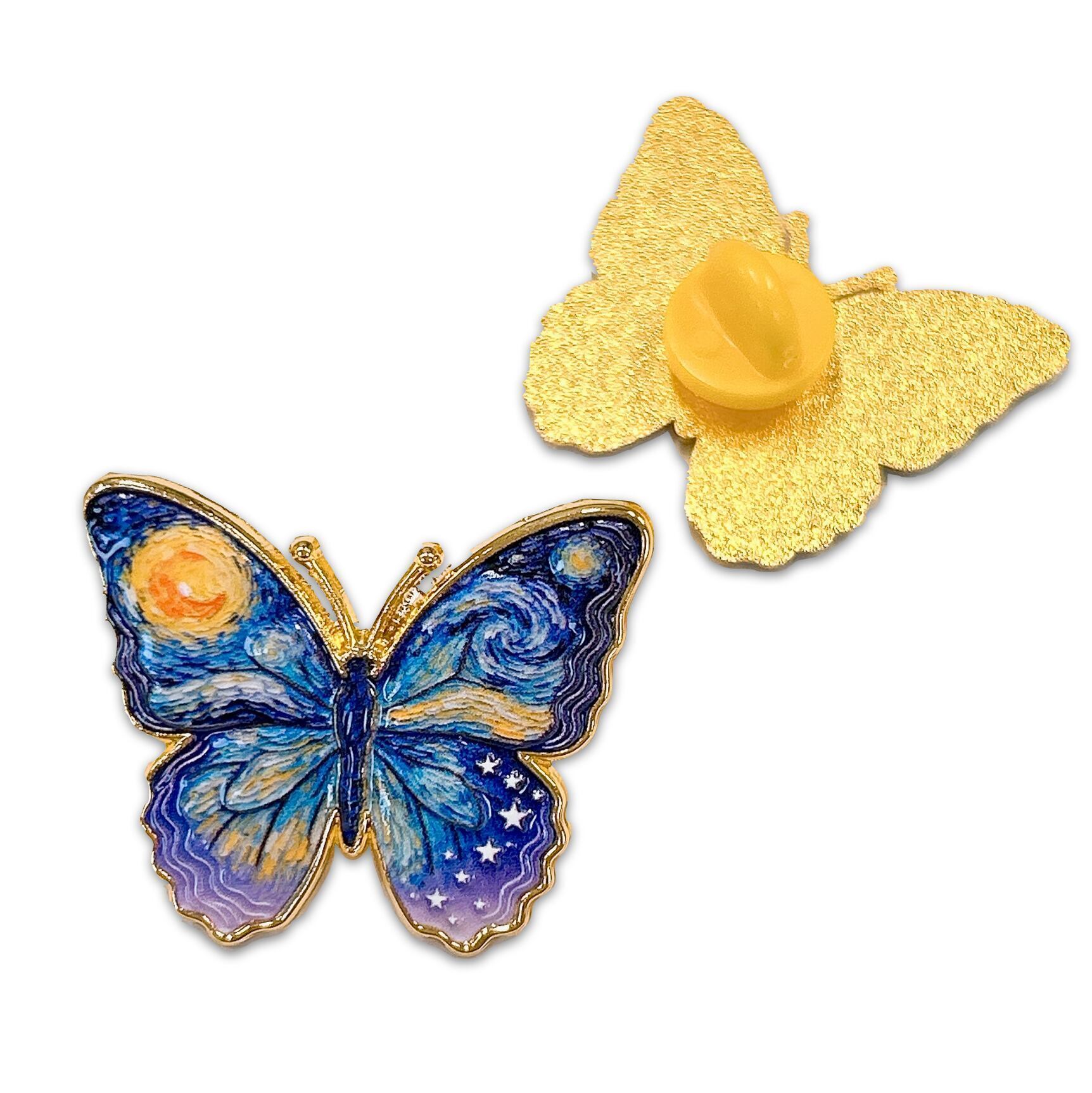 このゴッホ風のデザインが魅力のバタフライピンバッジは、