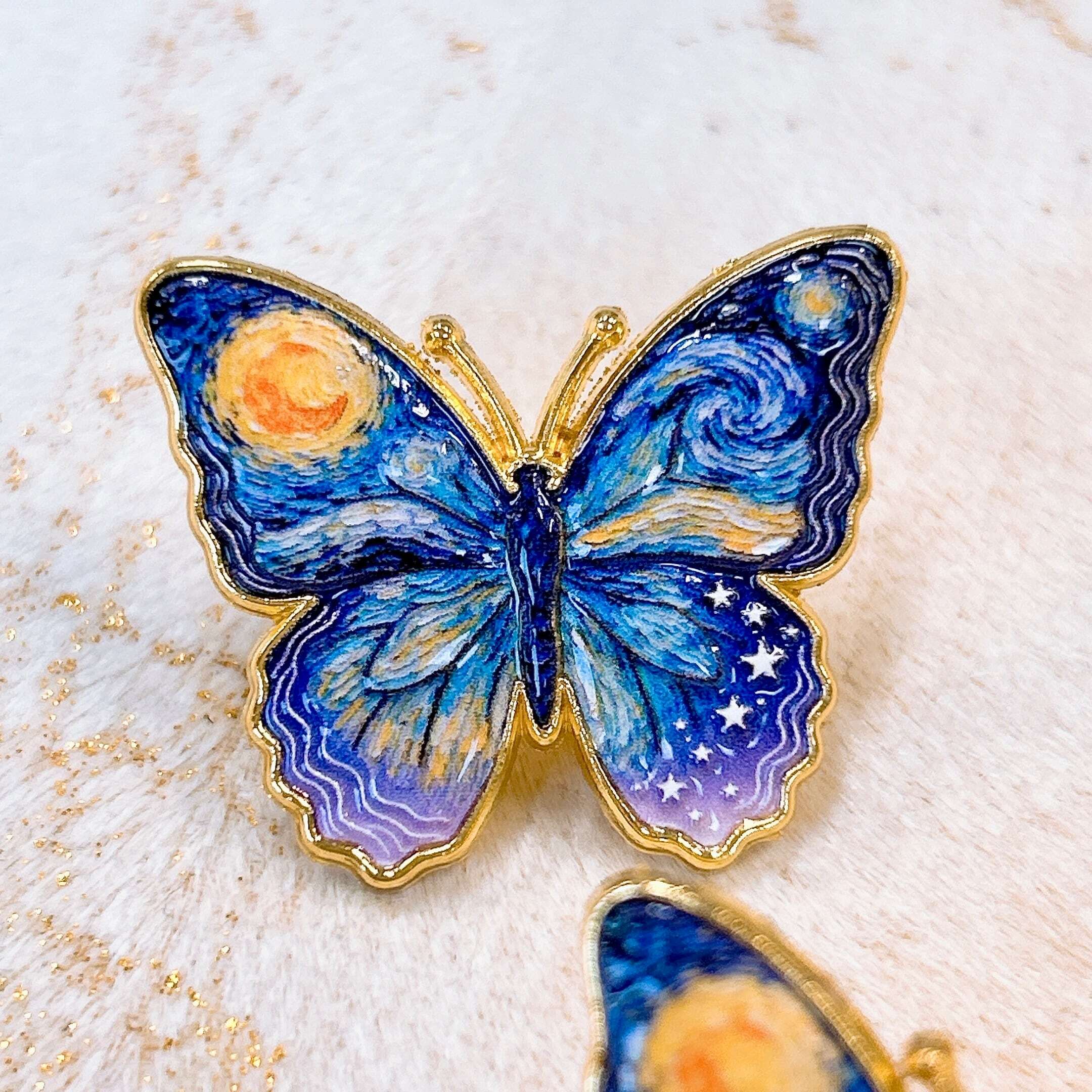 ⦅美しい月夜に舞うゴッホ風のバタフライピンバッジ⦆