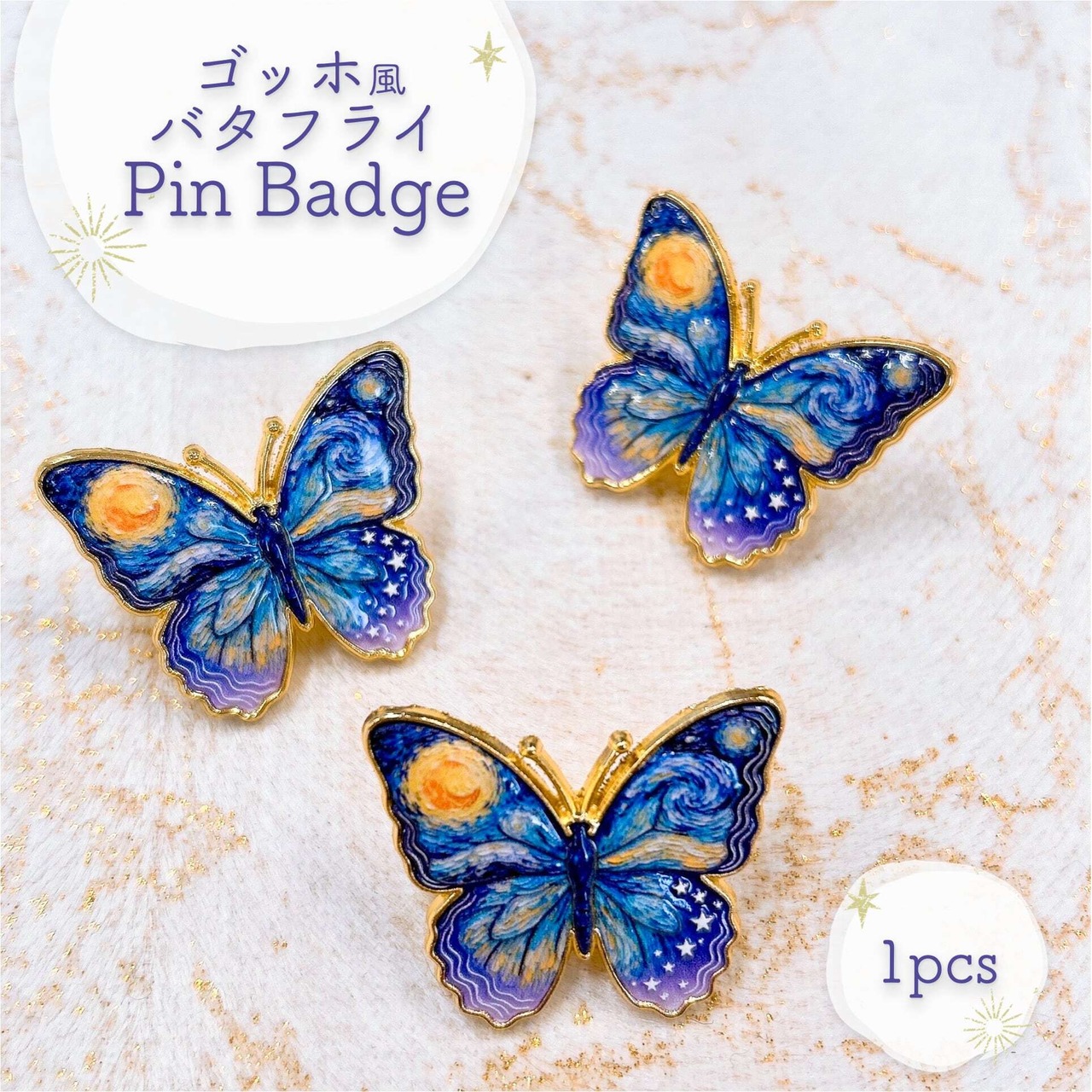 ■内容:ゴッホ風 バタフライ ピンバッジ 1個