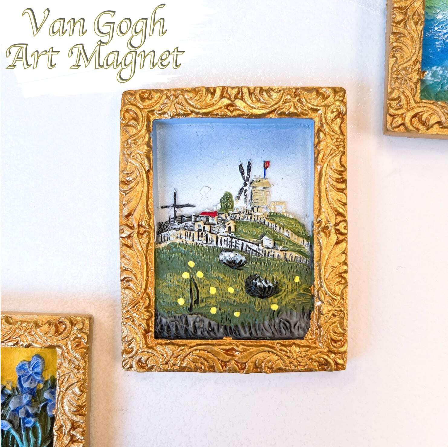 【 ゴッホ 額縁 アート 立体 マグネット 】モンマルトル:風車と菜園 3D 磁石 絵 名画 油絵 絵画 画廊 ギャラリー 作品 芸術 美術 美術館 ポスト印象派 冷蔵庫 ボード 玄関 メニュー リビング 子供 部屋 プレゼント ギフト 手のひらサイズ フィンセント ファン かわいい おしゃれ