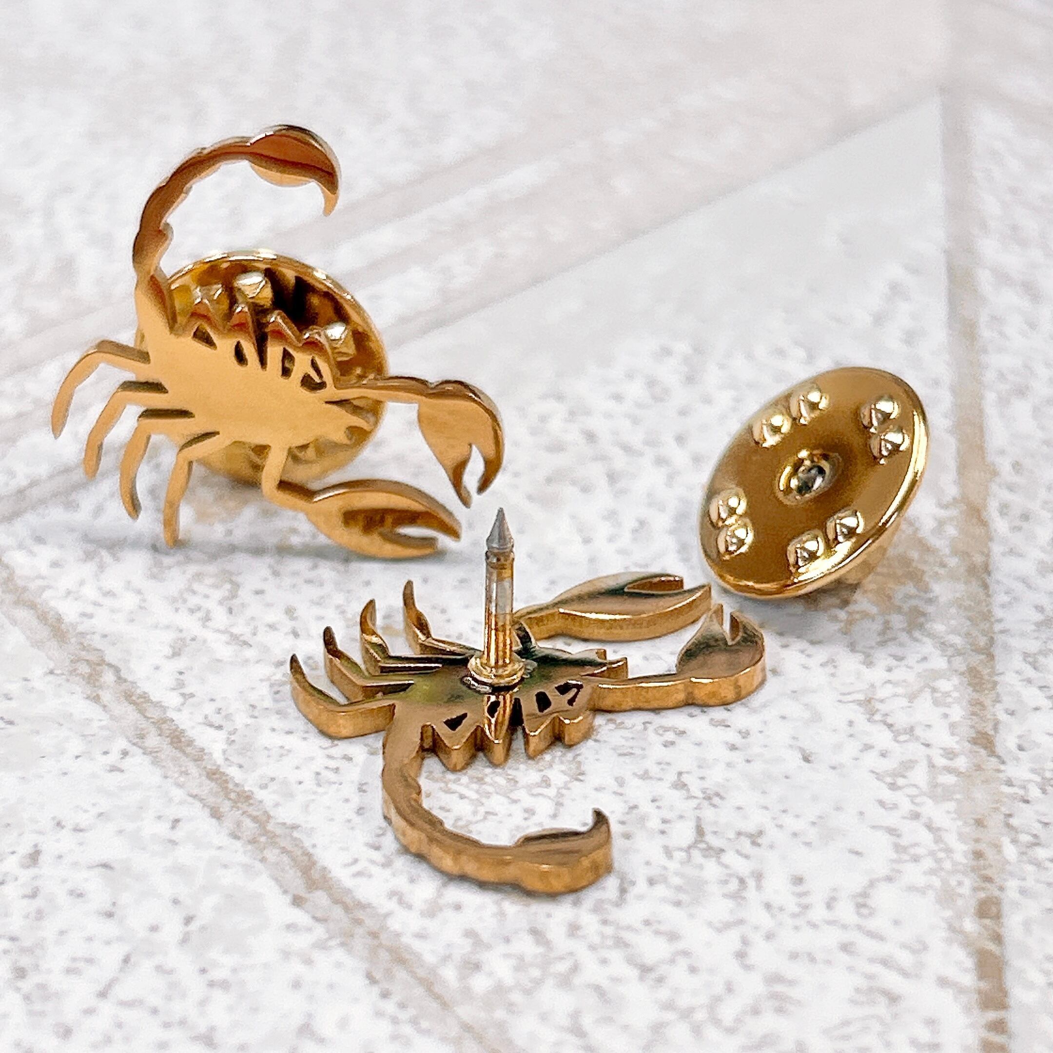 【 ゴールド サソリ ピンバッジ 】 1個 スコーピオン 蠍 蠍座 イベント ブローチ 幸運 縁起 魔除け 胸飾り 装飾ピン 黄金 縁起 アンティーク アクセサリー ジュエリー ファッション 小物 ワンポイント レディース コサージュ プレゼント おしゃれ アクセント シンプル かわいい