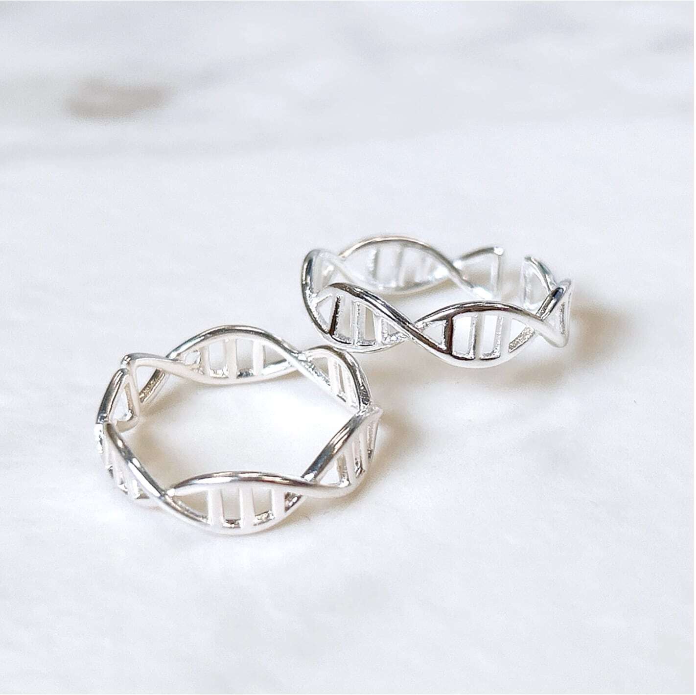 【 DNA シルバー リング 】1個 指輪 調整可能 科学 サイエンス 化学 デオキシリボ核酸 二重らせん構造 シンプル アクセサリー ジュエリー ファッション 小物 プレゼント ギフト ご褒美 自分用 普段着 普段使い 通学用 通勤用 旅行 パーティー イベント デート ディナー