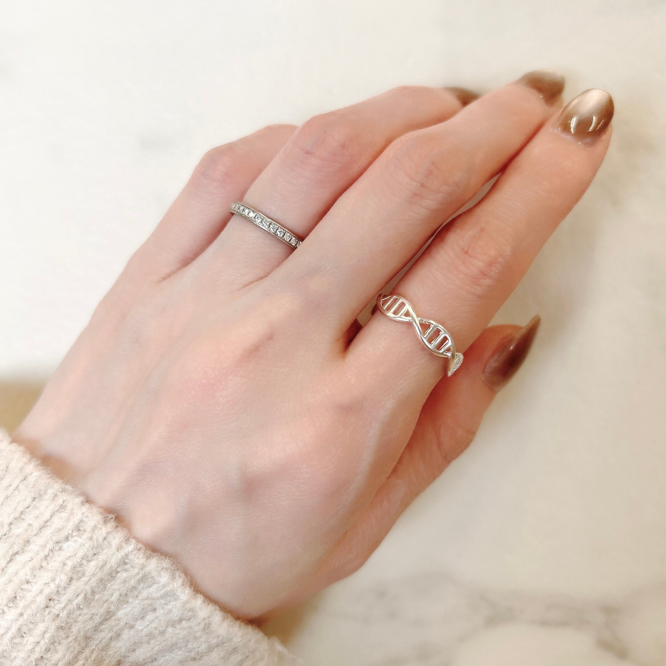 美しいシルバーの輝きと、独自のDNAモチーフが融合したこのリングは