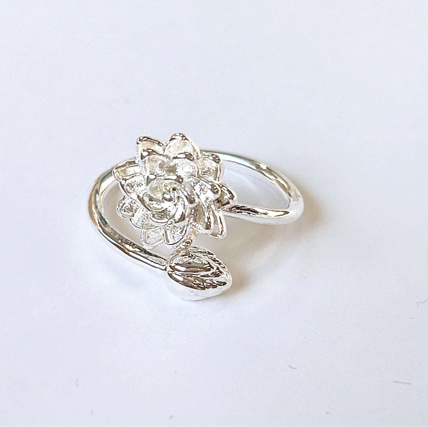 【 蓮の花 シルバー リング 】1個 指輪 調整可能 睡蓮 蓮 神聖 シンプル アクセサリー ジュエリー ファッション 小物 プレゼント ギフト ご褒美 自分用 普段着 普段使い 通学用 通勤用 旅行 パーティー イベント デート ディナー