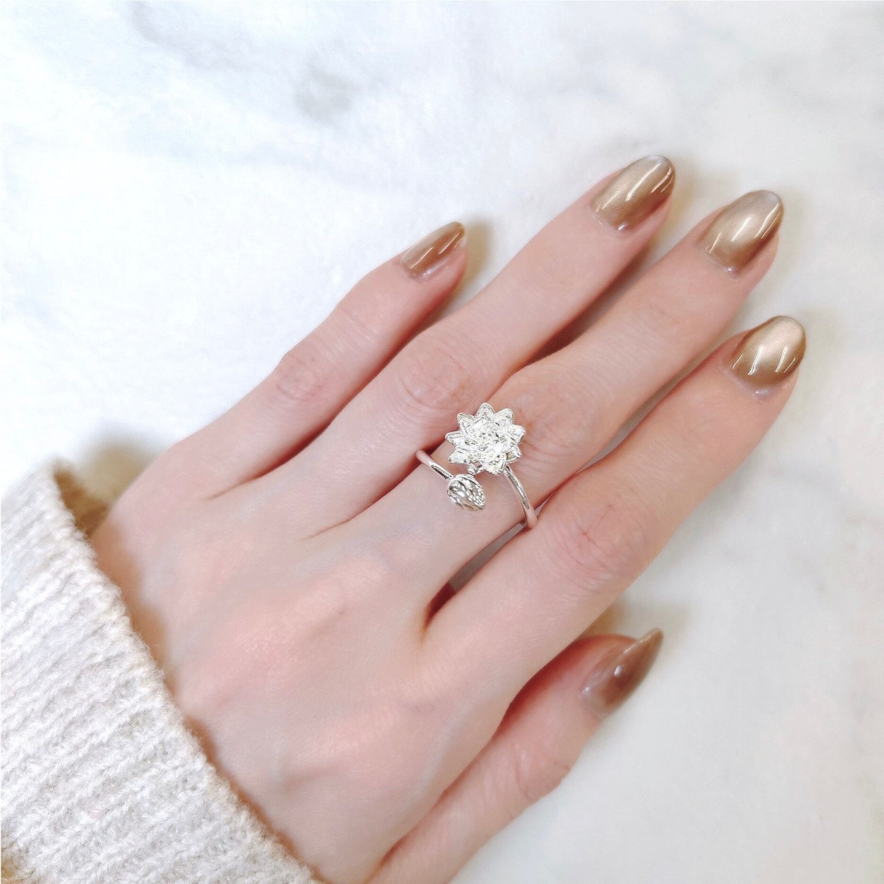 あなたの指を華やかに彩ります。蓮の花をモチーフにしたデザインは
