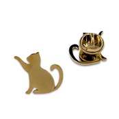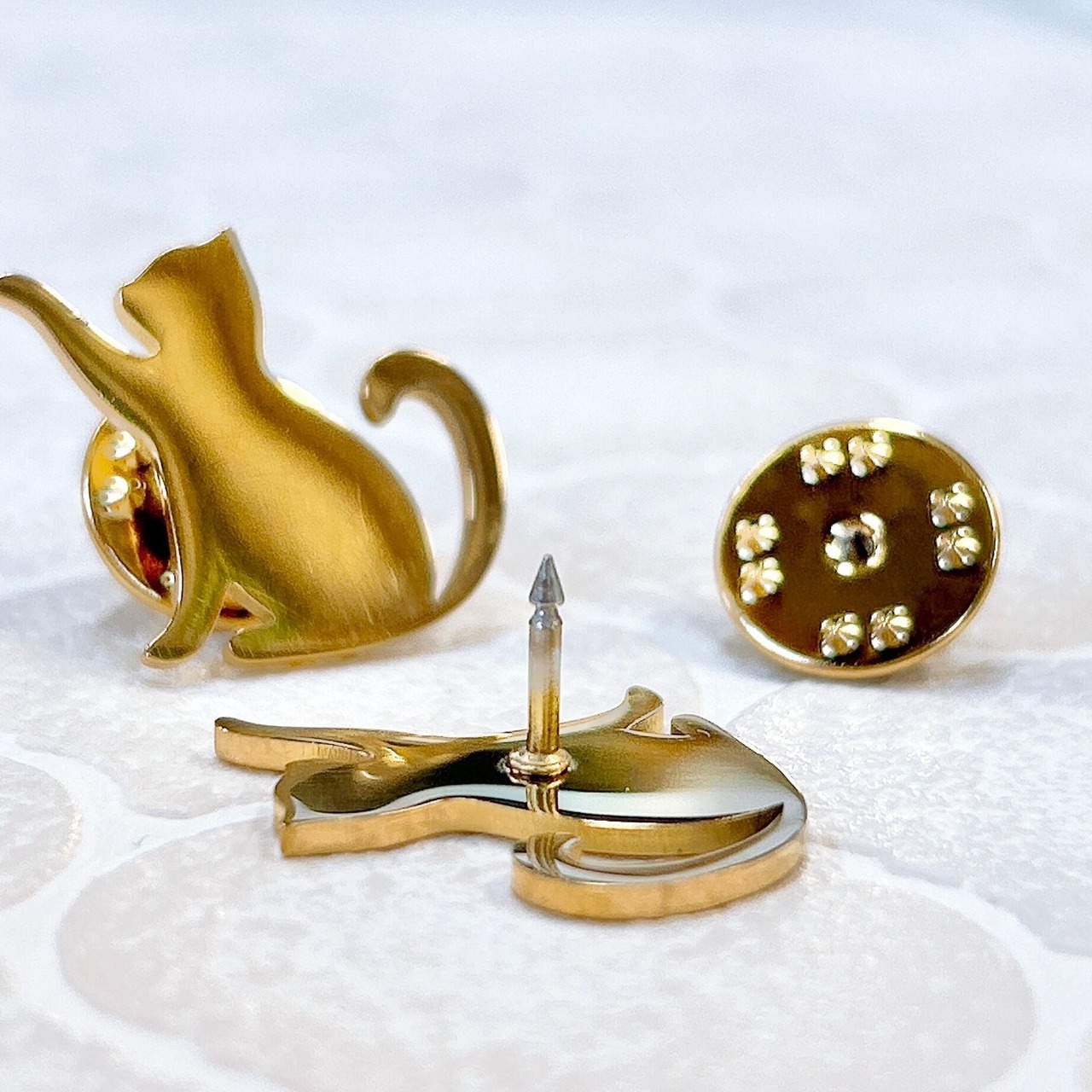 このピンバッジは、ゴールドの猫をテーマにした愛らしいデザインで