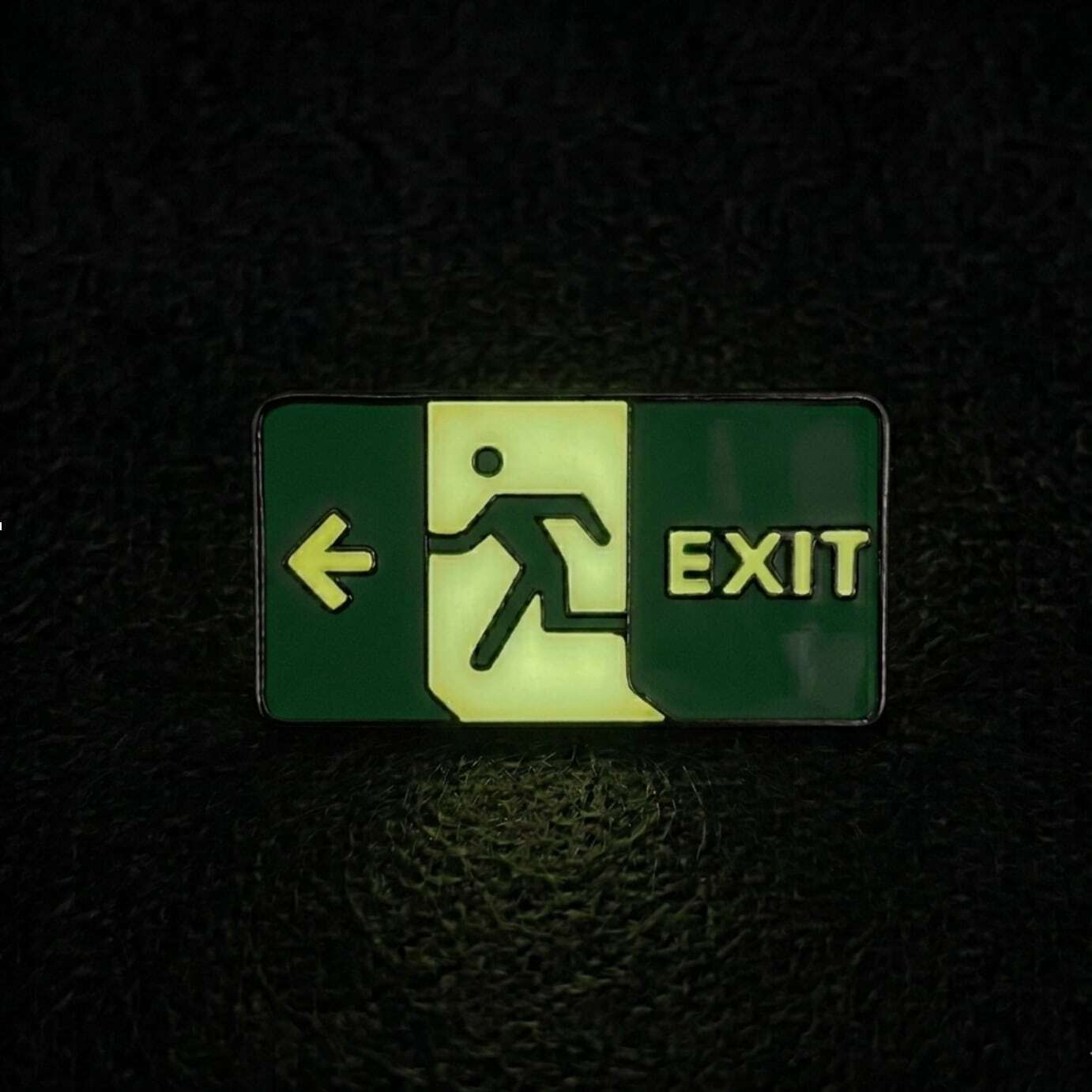 【 EXIT ピンバッジ 】1個 暗闇で光る 畜光 シルバー 非常口 出口 マーク 避難 誘導 標識 ブローチ 胸飾り 装飾ピン ファッション 小物 雑貨 アクセサリー ワンポイント プレゼント イベント おしゃれ アクセント シンプル かわいい 面白い ユニーク