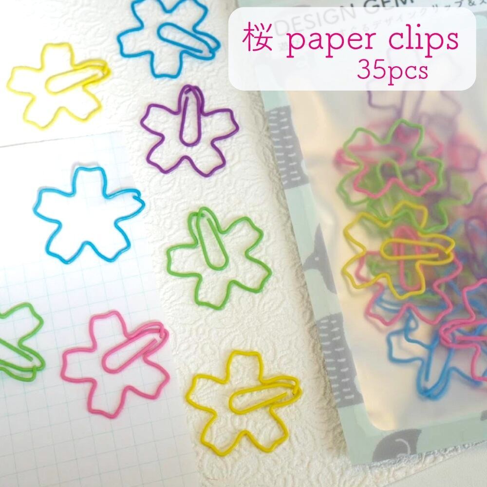 【 カラフル 桜 満開 クリップ 】 35個入り アソート ペーパー ゼム アイテム ステーショナリー 文房具 デスク オフィス 手帳 バインダー 春 さくら 入学 幼稚園 花 ブックマーカー ラッピング