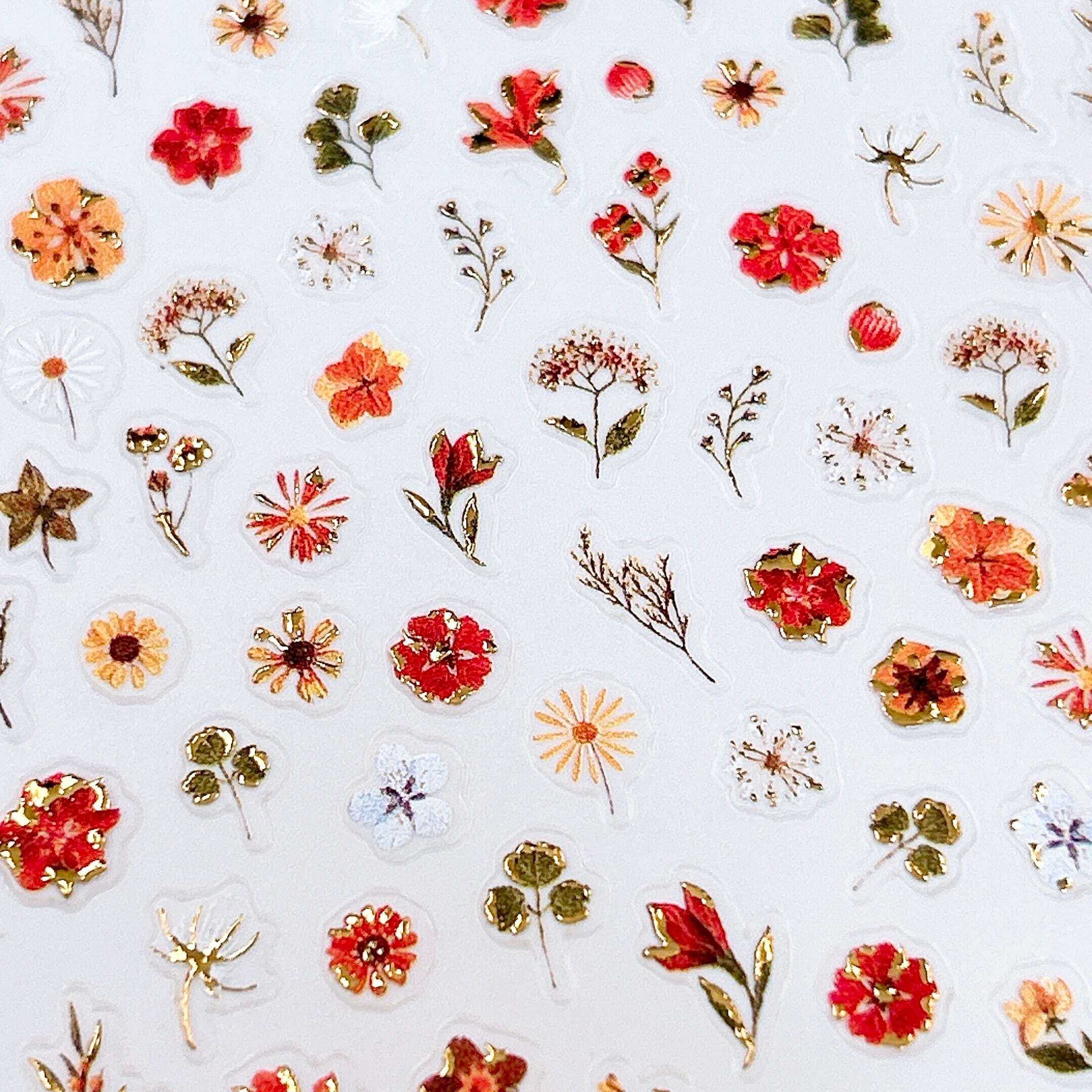 【 ネイル シール 】 オレンジ ニュアンス フラワー 小花柄 お花 押し花 ゴールド ボタニカル ネイルアート ジェルネイル 生活 自然 可愛い 美容 手 爪 デート 女 男 手紙 便箋 スタンプ エンボス 3D 立体 ぷく ぷっくり ステッカー おしゃれ 結婚式 招待状 ラッピング プレゼント カード シール交換 シール帳