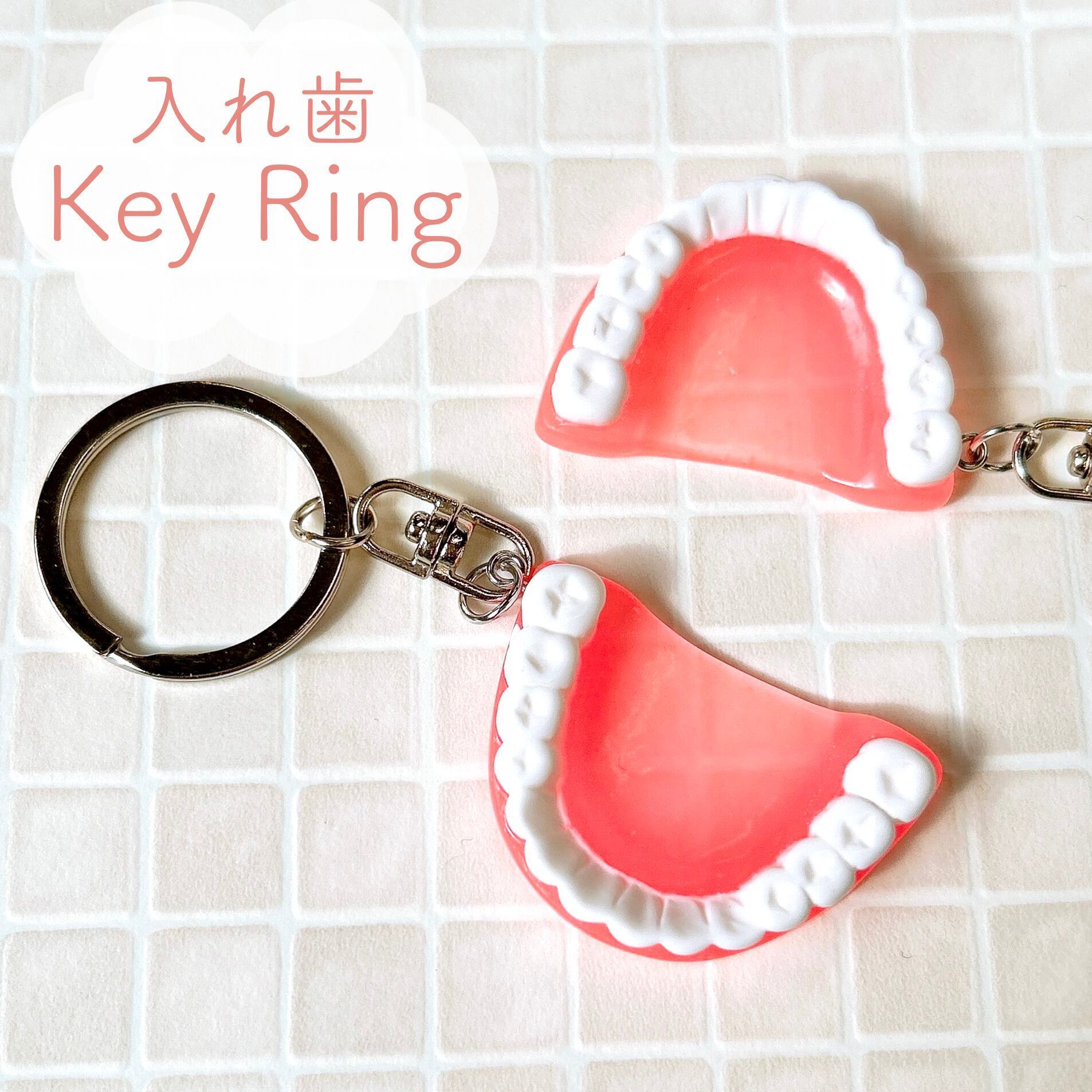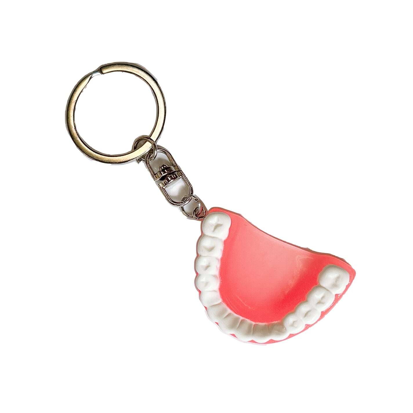 【 入れ歯 キーホルダー 】1個 ピンク 歯 歯医者 歯科 人工歯 上顎 義歯 技工士 プラスチック 鍵 キー ポーチ 文房具 文具 雑貨 小物 ショップ 鞄 学校 子供 男 女 癒し ギフト プレゼント かわいい おもしろい